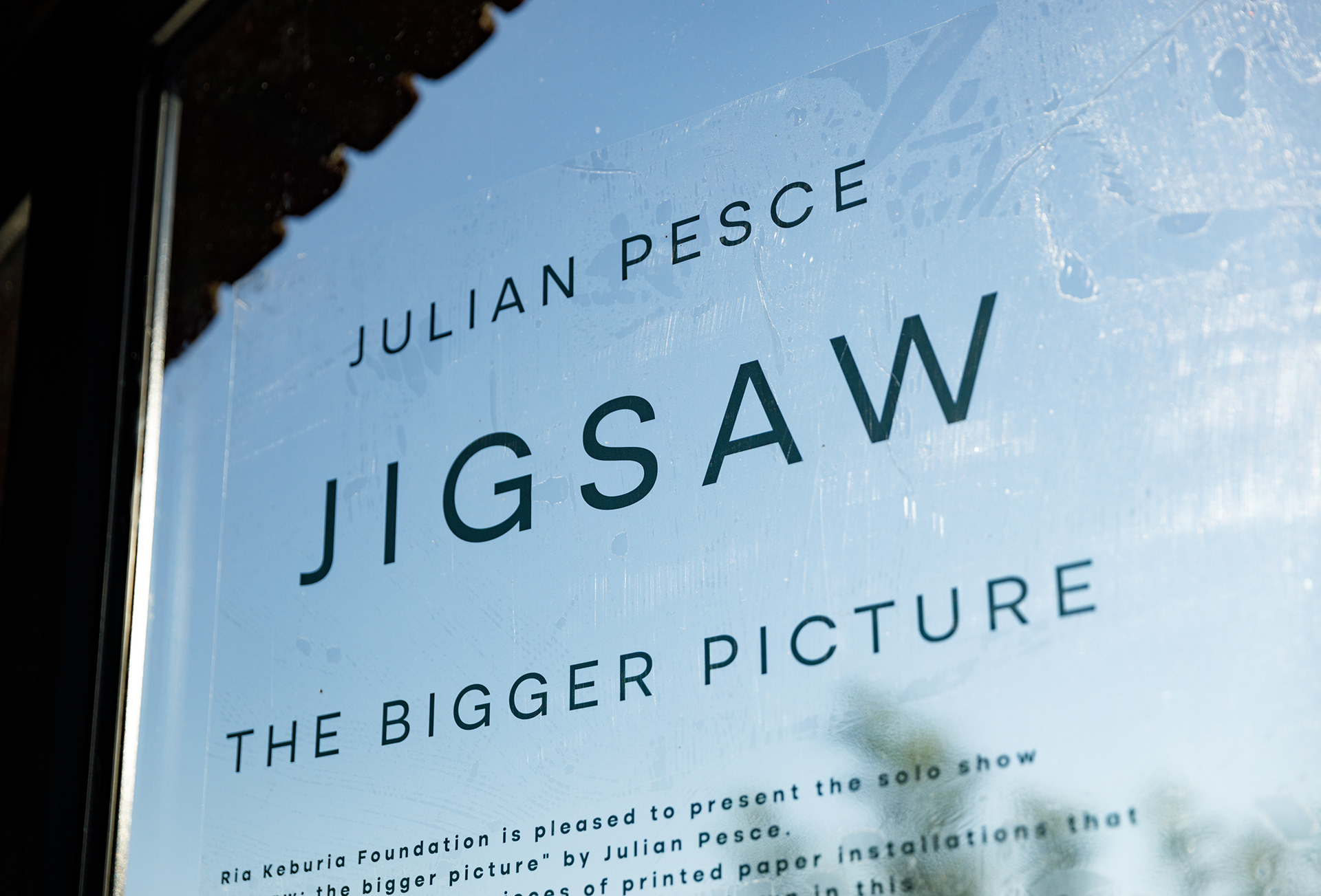 Uradio sam seriju dokumentarnih fotografija samostalne izložbe „Jigsaw: the bigger picture“ argentinskog umetnika Juliána Pescea, postavljene u prostoru Ria Keburia Foundation / Residency u Kachretiju, Gruzija. Na izložbi je predstavljeno 55 papirnih, štampanih instalacija koje se spajaju u nekoliko veliki formata. Ova dela su putovala iz Buenos Ajresa do Gruzije i funkcionišu kao jedinstvena prostorna celina, u kojoj se grafičke i štamparske tehnike pretvaraju u instalaciju u prostoru. Fotografijama sam želeo da zabeležim i strukturu radova i njihov odnos sa prostorom: ritam papira, razmeru, kretanje posetilaca i specifičnu, kontemplativnu atmosferu izložbe.